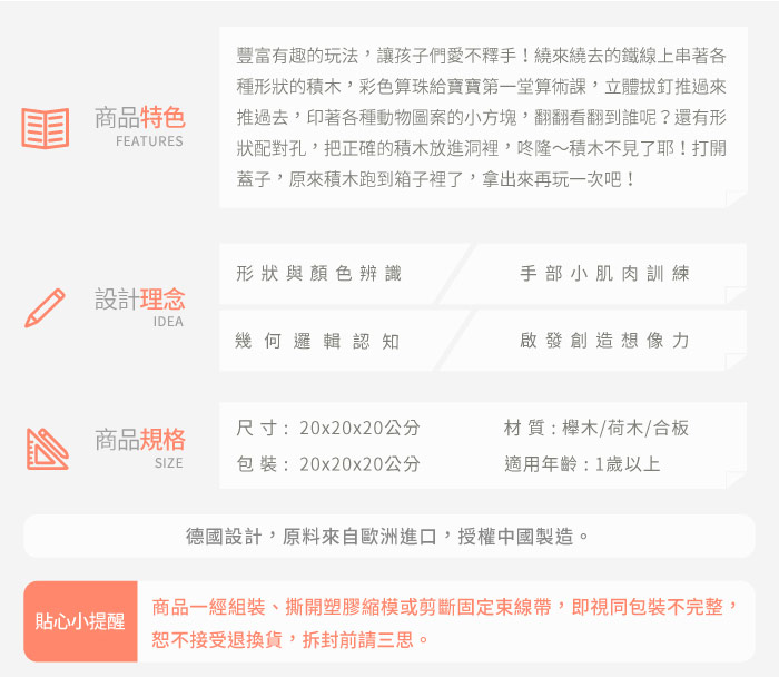 ▪️ 優質櫸木/荷木製成,無毒安全水性漆,打磨精細 ▪️ 手部小肌肉訓練,培養手眼協調能力和耐心