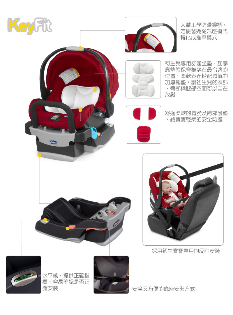 ▪️ KeyFit手提汽座可結合Chicco多款嬰兒手推車,外出時,將推車上的汽座輕鬆提起,放在汽車上搖身一變就是最安全的兒童汽座;下車時,再將手提汽座放置在推車上,一秒結合,毫不費力,讓爸媽愛上與小寶貝的旅行時光。