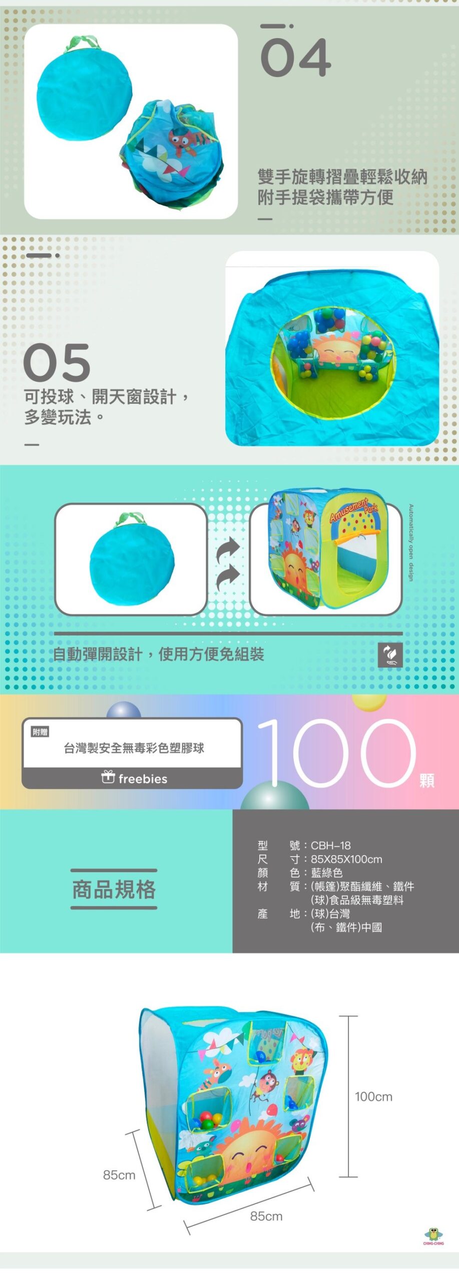 ▪️ 彈開帳設計,不需安裝即可使用 ▪️ 超大尺寸可容納2-3個小朋友一起遊玩 ▪️ 可摺疊,方便攜帶也方便收納
