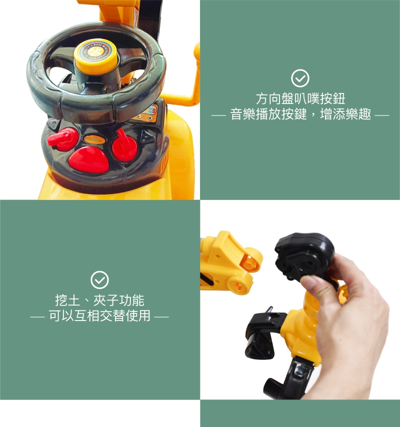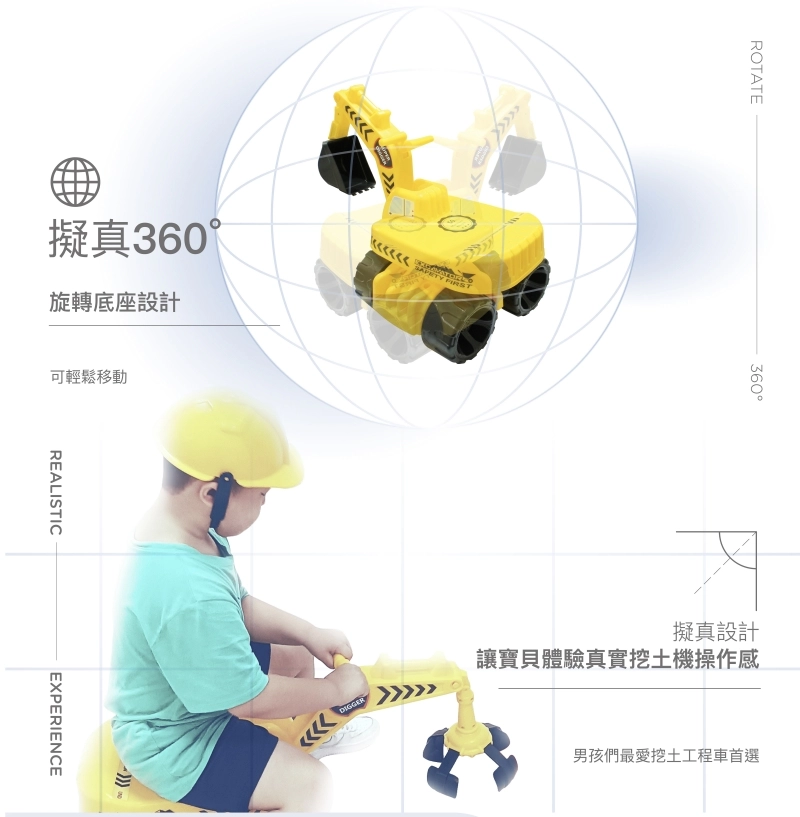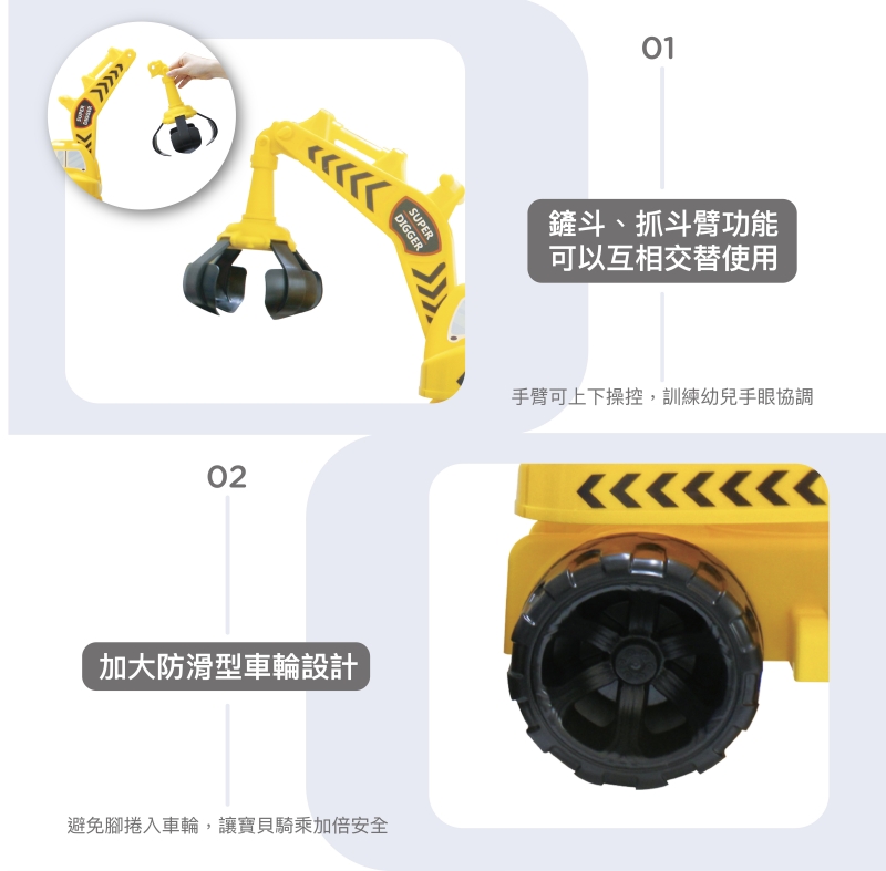 ▪️ 挖土、夾子功能可以互相交替使用,手臂可上下操控左右旋轉。