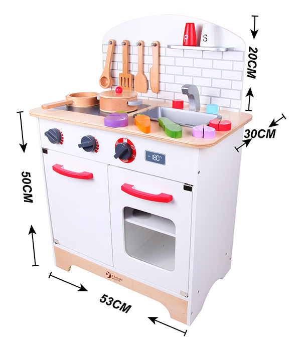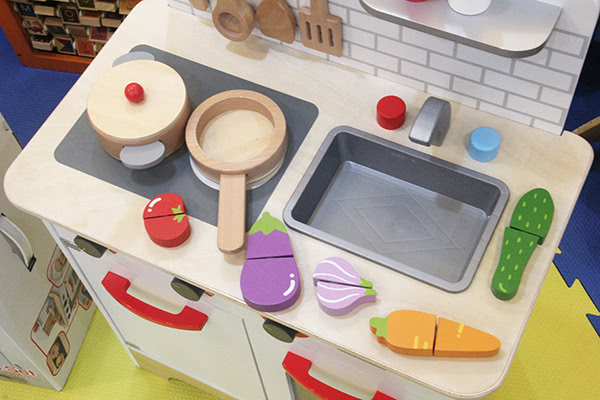 ▪️ 典雅的廚房台設計,木頭細緻讓玩具溫潤