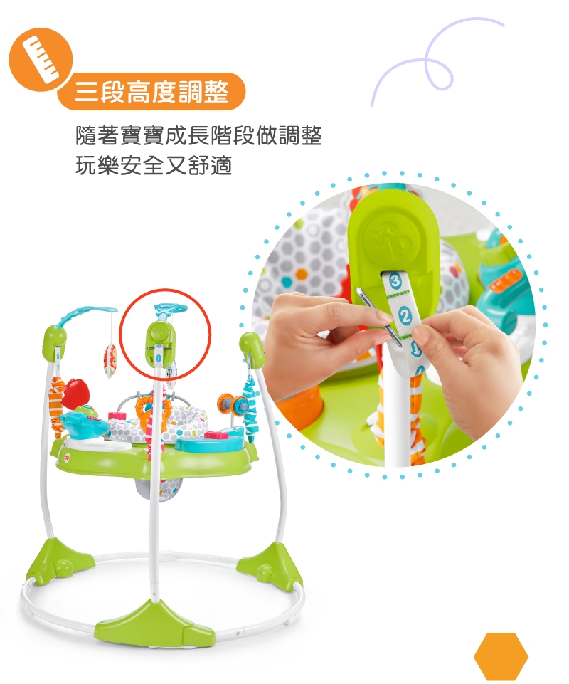 ▪️ 三階段高度調節,搭配寶寶成長,讓寶寶舒適地玩樂。