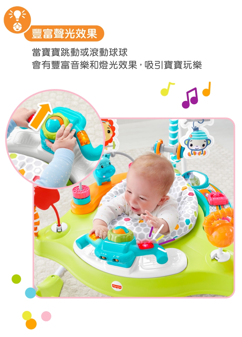 ▪️ 當寶寶跳動,就會有音樂及燈光當作獎勵,訓練大小腿肌肉。