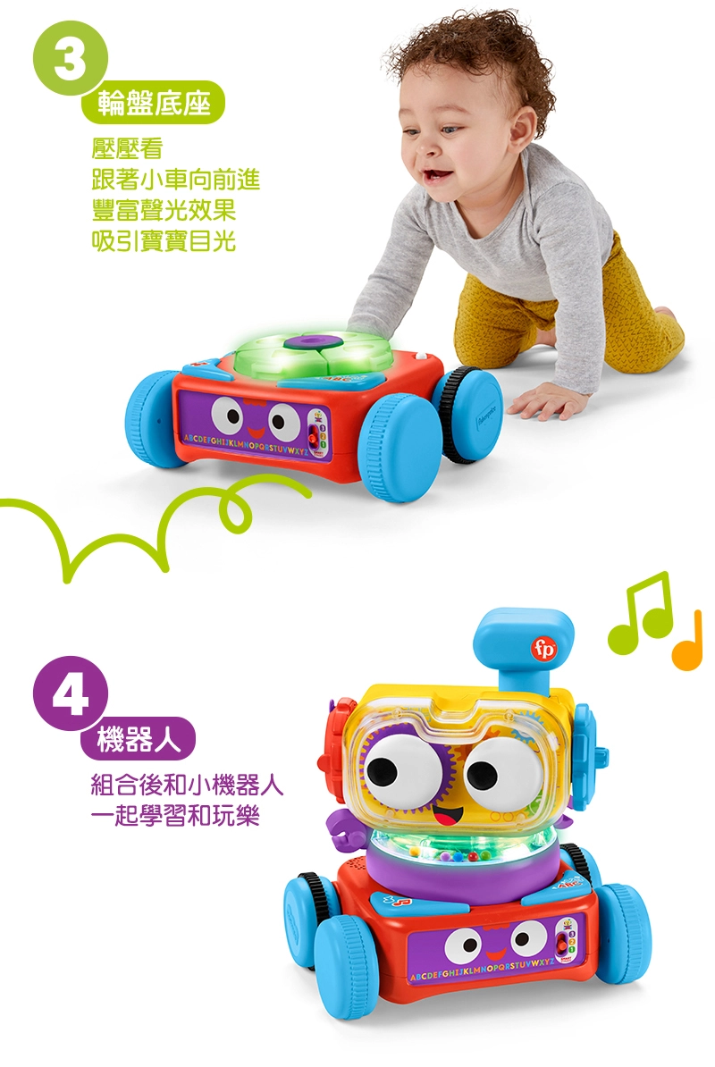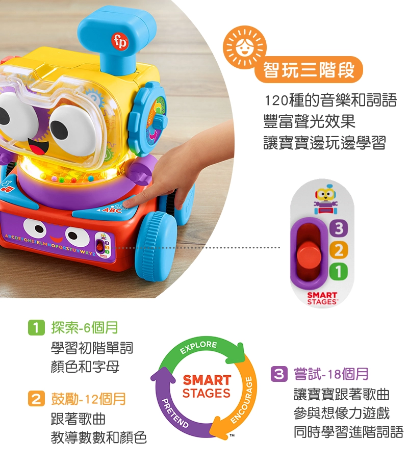 ▪️ 費雪獨家智玩三階段,配合寶寶學習的需要選擇適合的内容,教導數字、字母、形狀和顏色等。