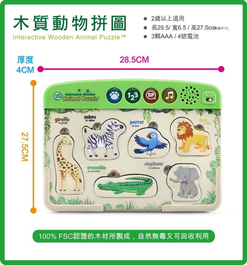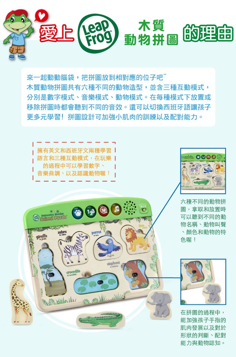 LeapFrog 跳跳蛙 木質動物拼圖