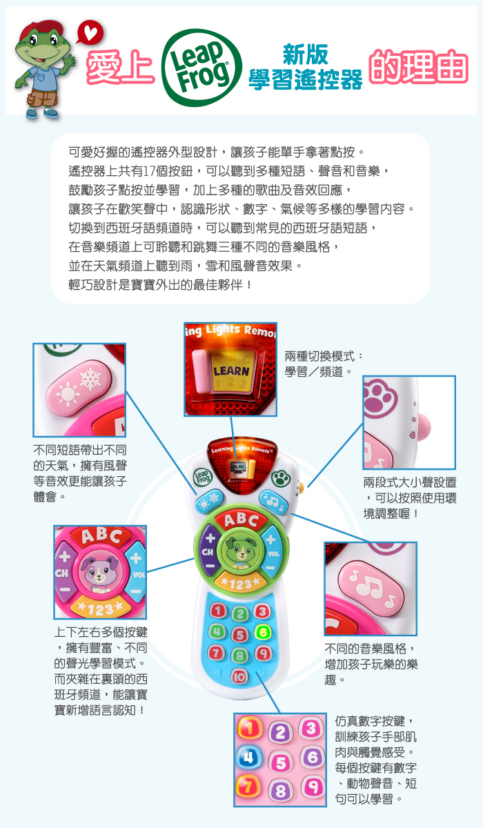 ▪ 遙控器外型設計,孩子能一手拿著點按遊戲
