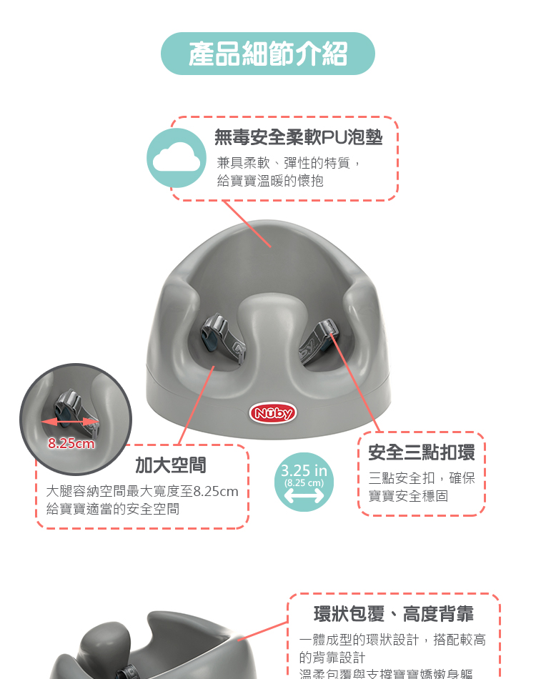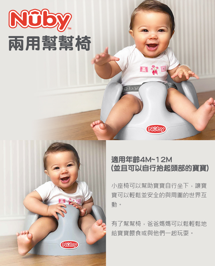 | 適用年齡 | 4~12個月(並可以自行抬起頭部的寶寶) 最重可承載至9.5kg |