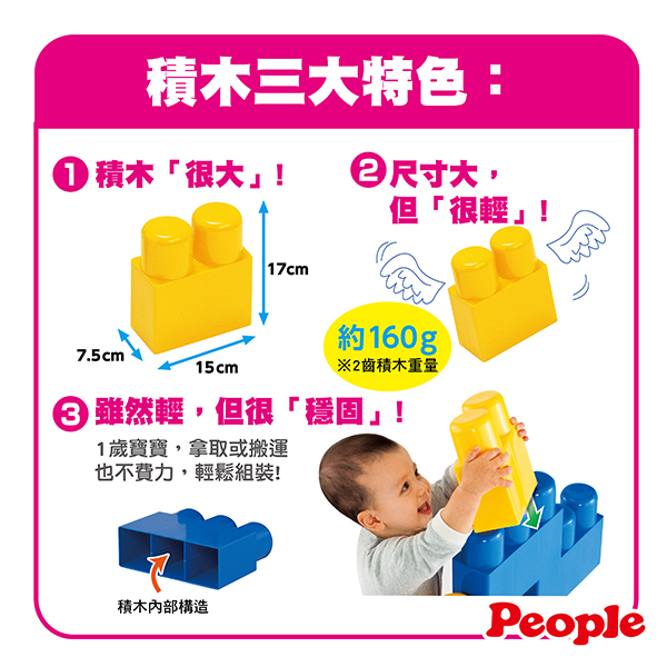 ▪️ 不像小積木手指操作較不易,大尺寸大大滿足1歲孩子的組裝樂趣!