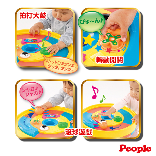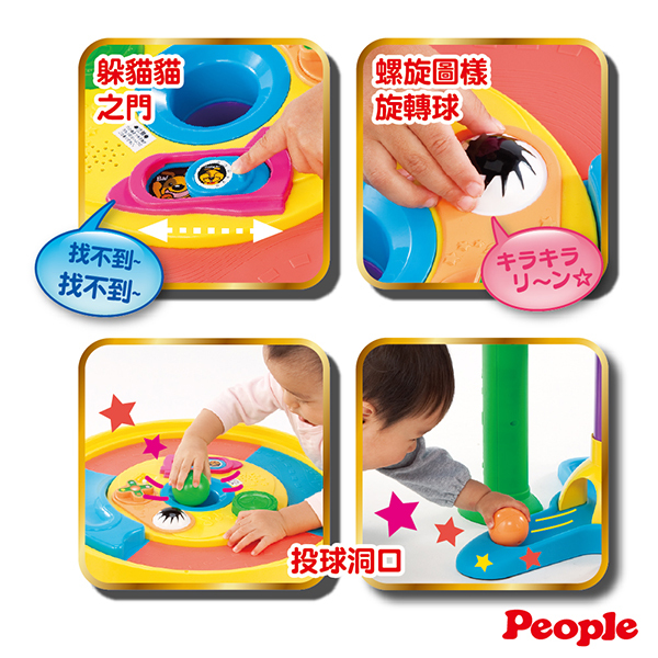 ▪️ 滾球遊戲:投入、凝視、追逐。將球投入後,球會沿著圓桌,通過隧道繞行1圈,大大滿足扶站階段的玩球樂趣。