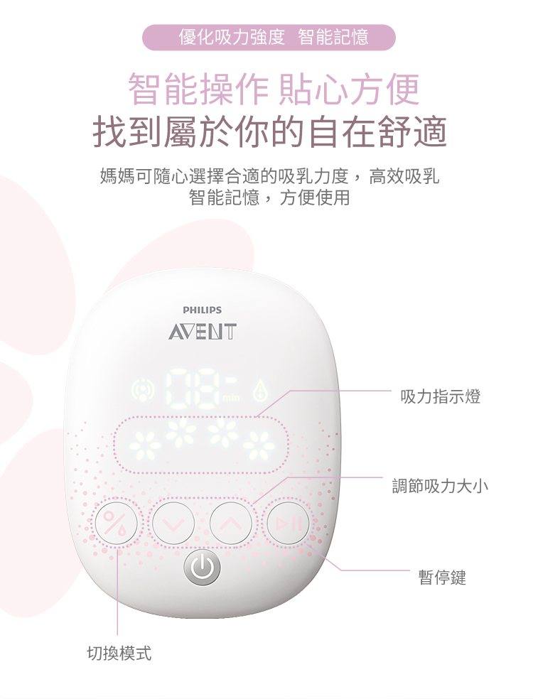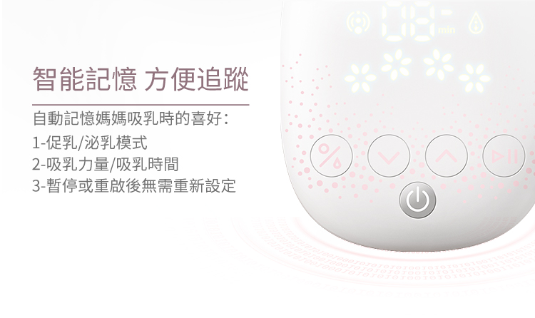 ▪️ 4 段按摩X4段深吸模式任搭,輕鬆喚醒奶陣,「智能記憶」輕鬆暫停或重啟,記憶媽媽吸乳喜好。