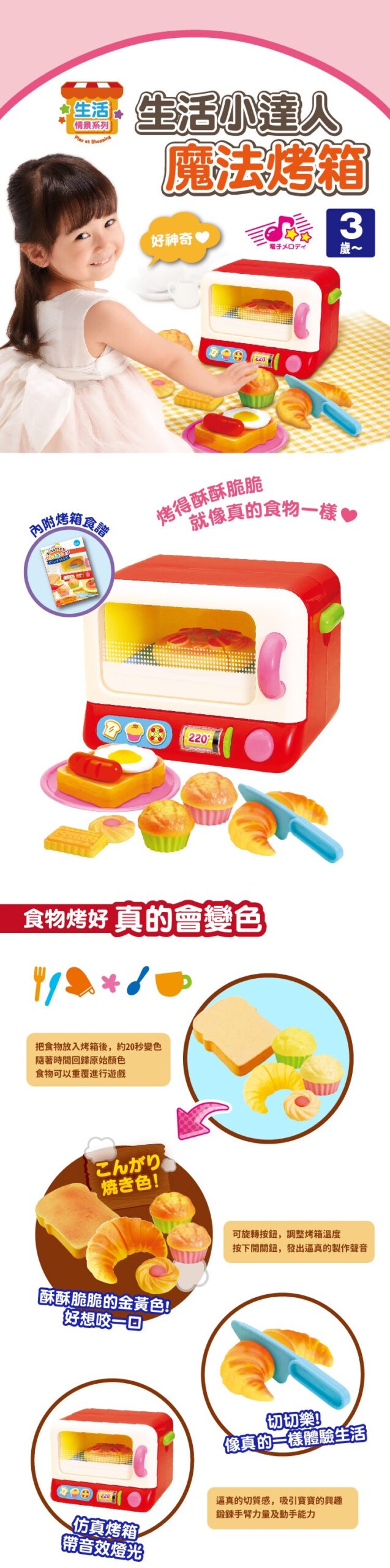 ▪️ 像真的一樣的烤麵包機造型,將麵包、可頌、披薩、餅乾放入烤箱,按下開關後等約25秒,好像變魔法一樣,點心會變成酥酥脆脆的色澤,非常有趣!