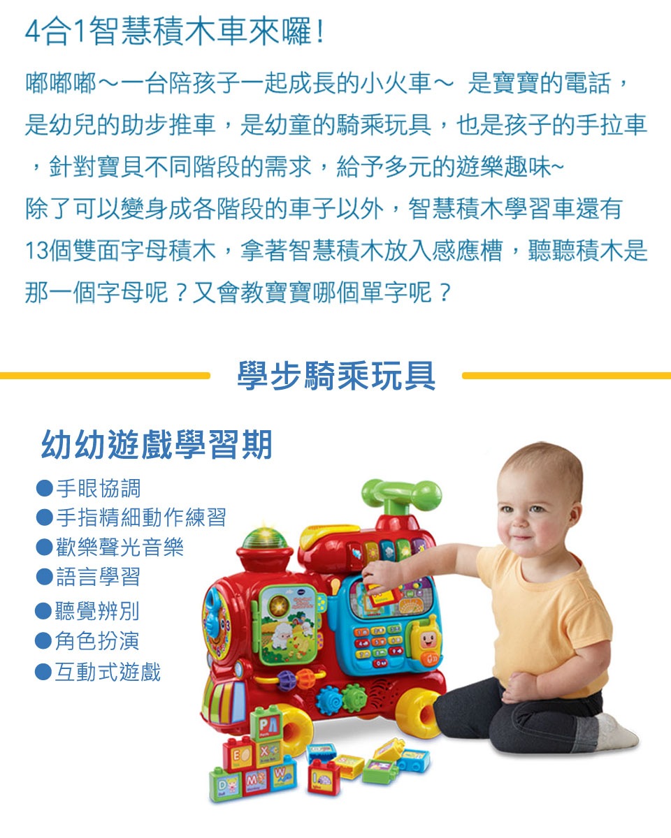 ▪️ 四合一字母列車,包括有坐下學習、騎乘、學步車、手拉車等方式學習遊玩
